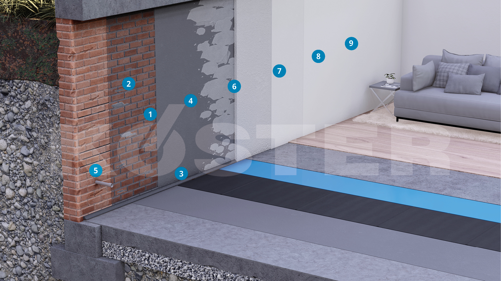 La impermeabilización retroactiva en los edificios existentes debe hacerse con sistemas de impermeabilización mineral. Tienen excelentes características de adhesión a las superficies minerales y tampoco se desprenden de los sustratos húmedos y mojados.