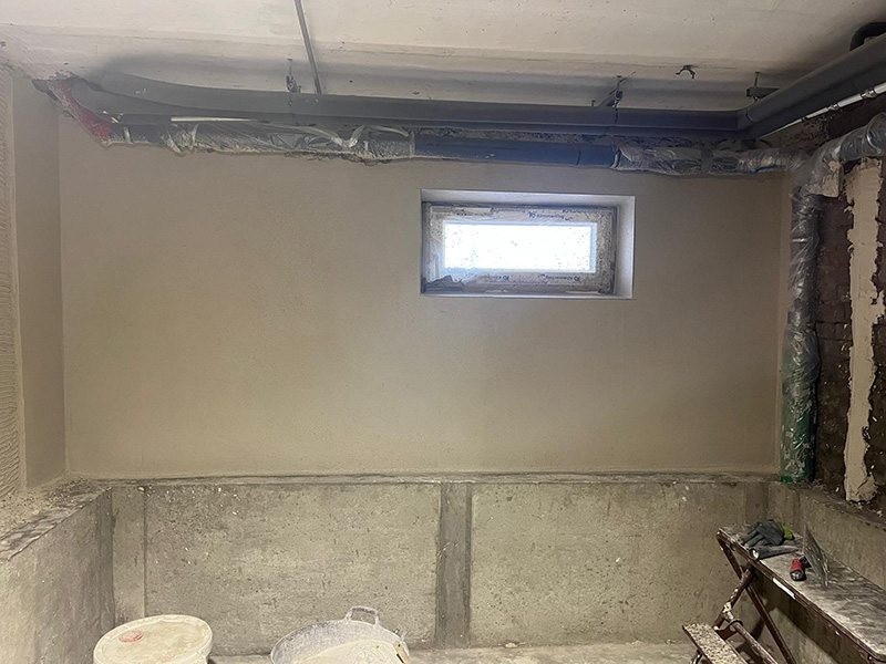 Umbau und Erweiterung, Kellerinnensanierung (Negativabdichtung), Horizontalsperre, Sanierputz, Sockelabdichtung
