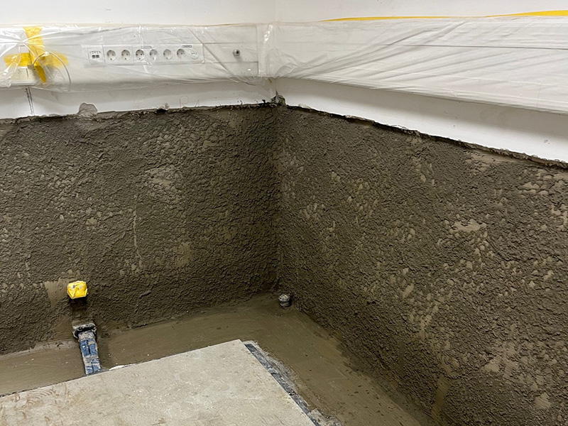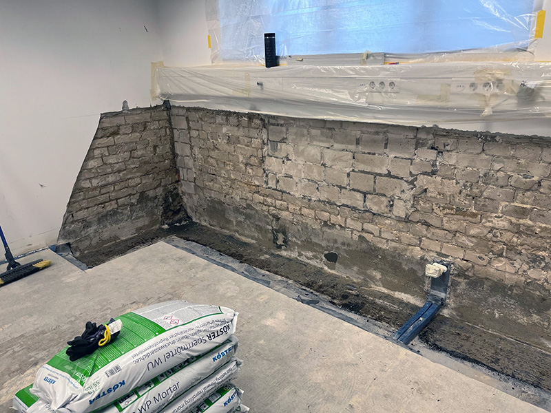 Zur Behebung der Schäden wurde eine Negativabdichtung mit aufbauendem Sanierputz installiert.