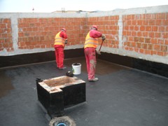 Slovenija, Škofja Loka, blok Podlubnik, izdelava hidroizolacije