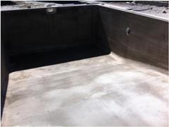 Impermeabilização positiva e negativa composta por Deuxan 2C aplicado pelo lado exterior (positivo). Pelo interior procedeu-se ao arredondamento de todos os ângulos de 90º com Repair Mortar e revestimento negativo com Polysil TG 500 e NB1 Grey em 3 kg/m2. Após cura de 2 dias, procedeu-se à impermeabilização positive elastic pelo interior, através da aplicação de NB Elastic Grey em 4,5 kg/m2 aplicado em 3 camadas.