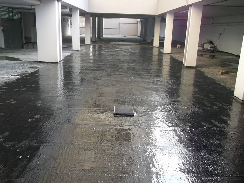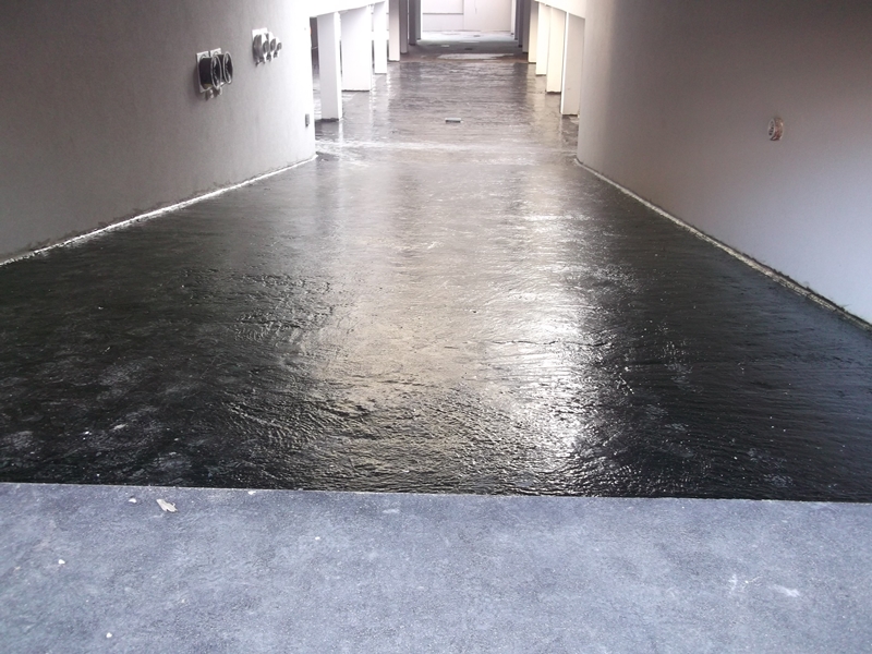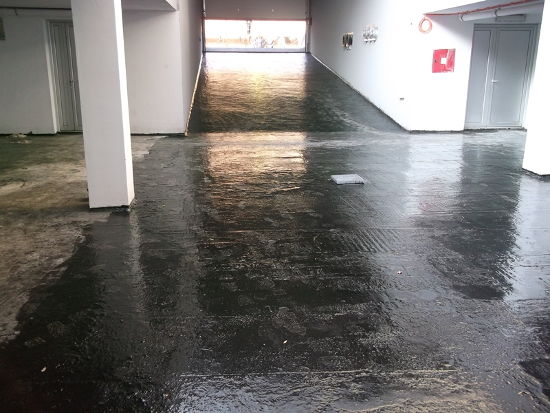 First step: Substrate preparation of tray/garage over concrete panel with KÖSTER NB 1 Grey. Second step: Priming with KÖSTER Bridge Coat. Third step: Application of KÖSTER PUR-Bitumen in two layers. After curing, application of finisch layer with asphalt/concrete.
