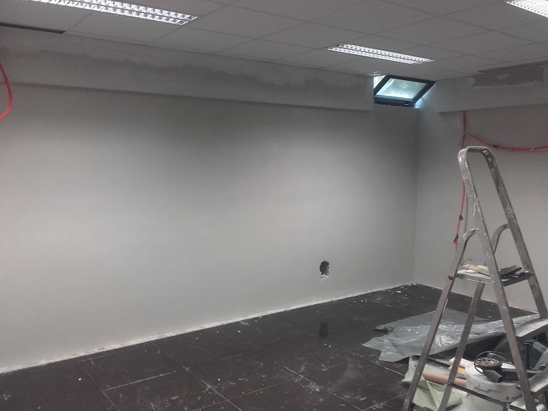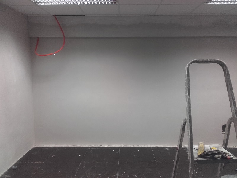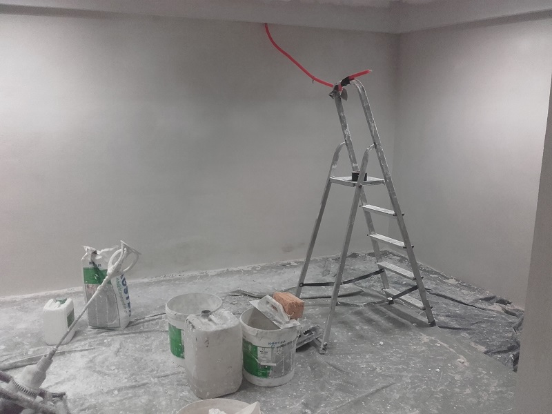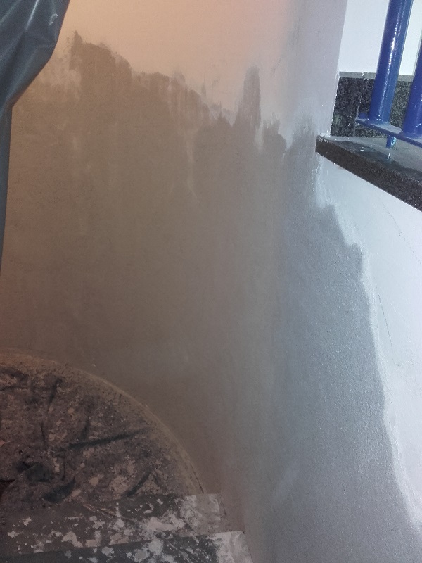 Iz sten so odstranili star omet in gips plošče, steno zbrusili in očistili, s Köster Crisin kremo naredili horizontalno bariero proti kapilarnemu dvigu vlage. Ko je bila narejena horizontalna bariera so preko naredili še tesnilni sistem s Köster Polysil TG 500 in Köster NB 1.  Prav tako so rešili in pravilno zatesnili preboje, ki so bili dodaten vir zamakanja v objekt. Kjer je bilo potrebno so  steno izravnali in lokalno popravili z izdelkoma  Köster KB-Fix 5 in Köster Betomor Multi A. Ko je bila stena sanirana, so nanesli Köster sanirni omet in za fino zagladitev še Köster Fini omet. V prostorih, ki so bili obremenjeni s plesnijo pa so stene še dodatno prebarvali s Köster MF 1, mineralno barvo, katera preprečuje pojav in nastajanje plesni.