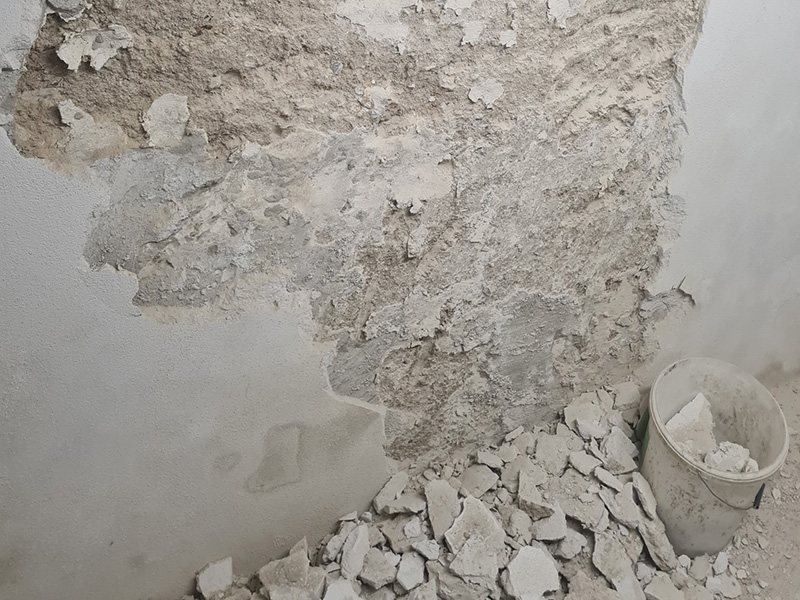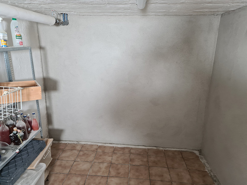 Der Kunde wünschte sich nach 20 Jahren endlich schöne Kellerwände. Das Problem war eine fehlerhafte Außenabdichtung sowie eine fehlende Horizontalsperre. Die Sanierung wurde von innen ausgeführt, um keinen Schaden im Außenbereich zu riskieren. Zunächst wurden die Wände gereinigt und von losem salzbelasteten Putz befreit. Eine Horizontalsperre mit KÖSTER Crisin Stäbchen ermöglicht es, die Sperre sehr hoch unter der Decke einzubringen, um aufsteigende Feuchtigkeit ins Haus zu vermeiden. Anschließend wurde KÖSTER Polysil TG 500 als Grundierung und Salzsperre aufgetragen, um danach mit KÖSTER Sperrmörtel div. Fehlstellen auszugleichen. Als Abdichtungslage wurde KÖSTER Sperrmörtel WU in zwei Lagen aufgetragen. Abschließend wurden KÖSTER Sanierputz Spritzbewurf und KÖSTER Sanierputz weiß fachmännisch aufgetragen.