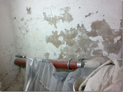 Abdichtung eines privaten Kellers durch Einbringen einer Horizontalsperre in Teilbereichen mit Crisin76 und Teilbereichen mit Mautrol, sowie Auftragen von KÖSTER Sperrmörtel und Sanierputz 2 weiß. Ein Großteil der Flächen wurde auch mit KÖSTER NB 1 grau abgedichtet.