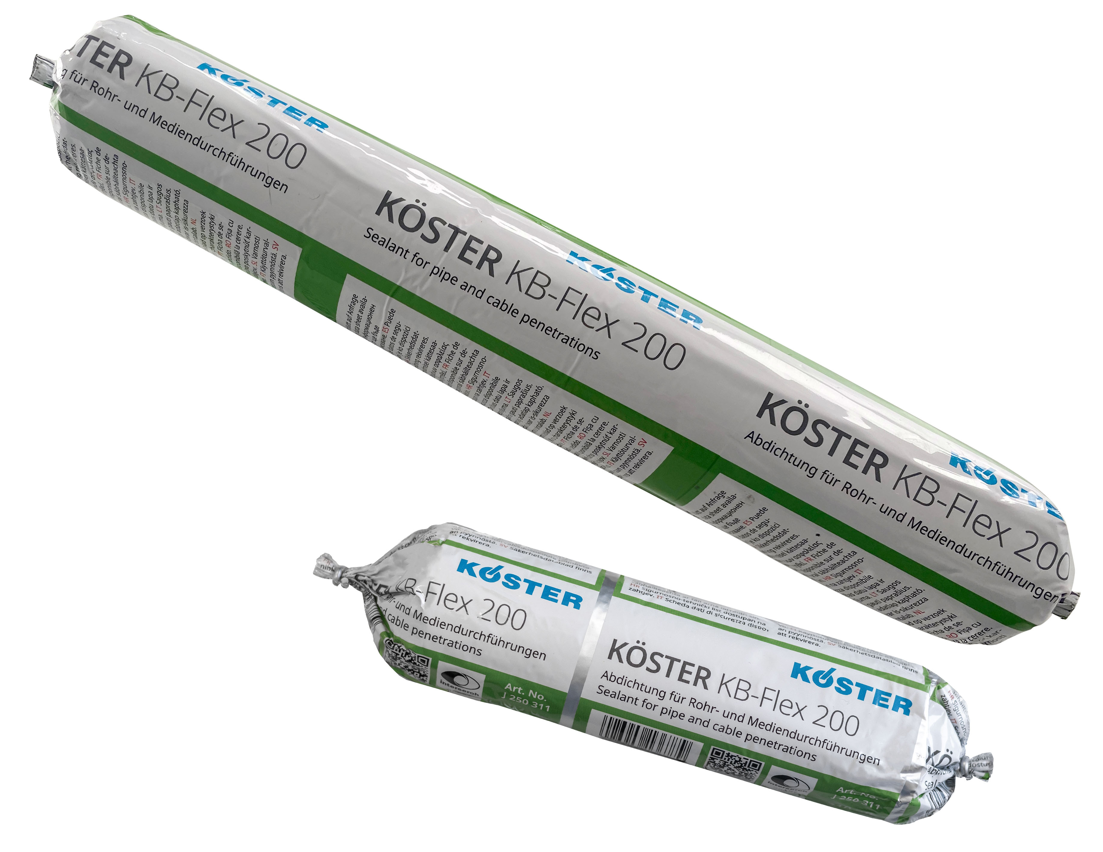 Sellador para pasos de tuberías y cables, incluso en el caso de agua a presión. KÖSTER KB-Flex 200 es un material permanentemente plástico de 1 componente, y por lo tanto, puede aplicarse directamente desde el cartucho; incluso en el caso de agua saliente. Nuestro video de demostración muestra una aplicación en vivo: